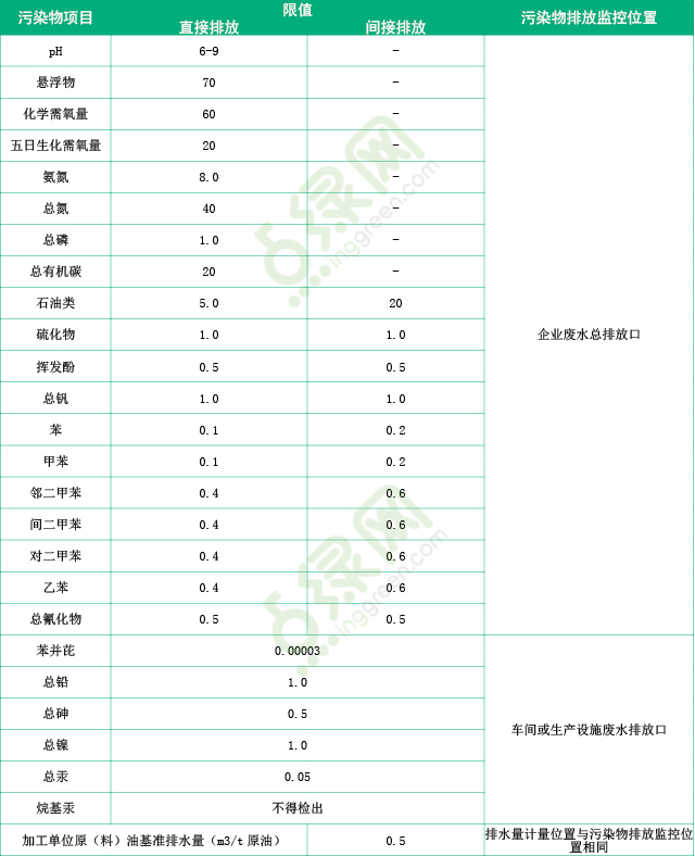 表1石油煉制工業(yè)水污染排放標(biāo)準(zhǔn)示例 單位:g.m-3(pH除外)