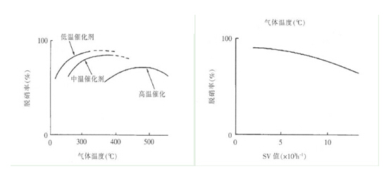對(duì)催化劑性能影響較大的因素有反應(yīng)溫度、催化劑量、氨的注入量,如圖3所示。由于在250~450 ℃(**好是350~400 ℃) ,催化劑有**佳活性,通常脫硝反應(yīng)設(shè)定在這個(gè)溫度范圍內(nèi)。當(dāng)反應(yīng)溫度不在這個(gè)溫度范圍內(nèi)時(shí),催化劑的性能將降低,尤其是在高溫區(qū)域使用時(shí),由于過(guò)熱促使催化劑的表面被燒結(jié),使催化劑壽命降低。